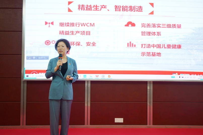 刘景萍董事长引用席大大总书记在2022年博鳌亚洲论坛上的重要讲话勉励全体与会人员,在海南自贸港建设的机遇期,认真学习贯彻落实省第八次党代会精神,坚持党建引领企业发展,将尊龙官方网站药业集团打造成中国儿童健康领军企业。